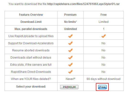 1. 點選任何人提供的 Rapidshare 下載網址後,請依下圖按 Free 的按鍵